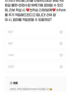 h포인트 퀴즈595 H포인트 퀴즈 12월 25일 정답(메리 크리스마스! 케이크 초는 부셨나요? 크리스마스를 맞아서 모바일상품권 선물하기 1만원만 충전해도 케이크 1만원 할인 쿠폰을 드리고 있는데요, 할인 쿠폰을 지원해드리는 케이크 브랜드는 어디일까요?) H포인트 퀴즈 12월 25일 문제입니다 메리 크리스마스! 케이크 초는 부셨나요? 크리스마스를 맞아서 모바일상품권 선물하기 1만원만 충전해도 케이크 1만원 할인 쿠폰을 드리고 있는데요, 할인 쿠폰을 지원해드리는 케이크 브랜드는 어디일까요? 보기는 1. 뚜레쥬르 2. 배스킨라빈스 3. 파리바게뜨 4. 베즐리 입니다 H포인트 퀴즈 정답은 배스킨라빈스 입니다 포인트는 현금 전환 가능하니 꼭 받으세요쿠팡 파트너스 활동의 일환으로, 이에 따른 일정액의 수수료를 제공받습니다 IT리더 함께 보면 좋은 영상 [리더유 유튜브 구독 바로가기]- 리더유 유튜브 구독하시면 쉽게 IT를 배울 수 있습니다. 알림 체크도 해두시면 좋아요 2025. 12. 25. H포인트 퀴즈 12월 23일 정답(모바일 식권 업체 1위 0000은 회사 근처 식당 메뉴를 한눈에 확인하고, 지갑 없이 간편 결제 및 식사를 할 수 있는 어플입니다. 해당 서비스를 이용하는 직원들은 특가대장 메뉴를 통해 현대이지웰에서 운영하는 최저가SHOP과 다양한 프로모션도 경험할 수 있는데요! 해당 서비스는 무엇일까요?) H포인트 퀴즈 12월 23일 문제입니다 모바일 식권 업체 1위 0000은 회사 근처 식당 메뉴를 한눈에 확인하고, 지갑 없이 간편 결제 및 식사를 할 수 있는 어플입니다. 해당 서비스를 이용하는 직원들은 특가대장 메뉴를 통해 현대이지웰에서 운영하는 최저가SHOP과 다양한 프로모션도 경험할 수 있는데요! 해당 서비스는 무엇일까요? H포인트 퀴즈 정답은 식권대장 입니다 포인트는 현금 전환 가능하니 꼭 받으세요 2025. 12. 23. H포인트 퀴즈 12월 22일 정답(북유럽 프리미엄 베드웨어, 매그니버그(Magniberg)의 겨울 대표 품목인 블랭킷 & 스카프의 제품 라인 명칭에 해당하지 않는 것은 무엇일까요?) H포인트 퀴즈 12월 22일 문제입니다 북유럽 프리미엄 베드웨어, 매그니버그(Magniberg)의 겨울 대표 품목인 블랭킷 & 스카프의 제품 라인 명칭에 해당하지 않는 것은 무엇일까요? 보기는 1. 허니 2. 프린세스 3. 퀸 4. 젤라또 입니다 H포인트 퀴즈 정답은 젤라또 입니다 포인트는 현금 전환 가능하니 꼭 받으세요 2025. 12. 22. H포인트 퀴즈 12월 21일 정답(리바트 OO에서는 국내 다양한 수공예 작가들의 작품을 12월 한정 15% 혜택과 함께 만나 볼 수 있는데요! OO은 무엇일까요?) H포인트 퀴즈 12월 21일 문제입니다 리바트 OO에서는 국내 다양한 수공예 작가들의 작품을 12월 한정 15% 혜택과 함께 만나 볼 수 있는데요! OO은 무엇일까요? 보기는 1. 곰방 2. 가구 3. 리빙 4. 마켓 입니다. H포인트 퀴즈 정답은 공방 입니다 포인트는 현금 전환 가능하니 꼭 받으세요 2025. 12. 21. H포인트 퀴즈 12월 20일 정답(H.Point X 배스킨라빈스 크리스마스 스페셜 이벤트! 12월 배스킨라빈스에서 결제 시, 결제금액의 %까지 H.Point 결제가 가능합니다. 설레는 크리스마스 배스킨라빈스에서 H.Point와 함께 행복한 시간 보내세요! ) H포인트 퀴즈 12월 20일 문제입니다 H.Point X 배스킨라빈스 크리스마스 스페셜 이벤트! 12월 배스킨라빈스에서 결제 시, 결제금액의 %까지 H.Point 결제가 가능합니다. 설레는 크리스마스 배스킨라빈스에서 H.Point와 함께 행복한 시간 보내세요! 에 들어갈 숫자를 맞춰주세요! H포인트 퀴즈 정답은 100입니다 포인트는 현금 전환 가능하니 꼭 받으세요 2025. 12. 20. H포인트 퀴즈 12월 19일 정답(고기 러버들을 위한 현대백화점의 클럽 프로그램! H.Point 회원이라면 누구나 가입할 수 있고, 신규 가입만 해도 현대백화점 정육코너 1만원 할인쿠폰을 증정하는 이 클럽의 이름은 무엇일까요?) H포인트 퀴즈 12월 19일 문제입니다 고기 러버들을 위한 현대백화점의 클럽 프로그램! H.Point 회원이라면 누구나 가입할 수 있고, 신규 가입만 해도 현대백화점 정육코너 1만원 할인쿠폰을 증정하는 이 클럽의 이름은 무엇일까요? 보기는 1. 고기서 고기 2. 육식주의보 3. 육학다식 4. 육식 매니아 입니다 H포인트 퀴즈 정답은 육학다식 입니다 포인트는 현금 전환 가능하니 꼭 받으세요 2025. 12. 19. 이전 1 2 3 4 ··· 100 다음